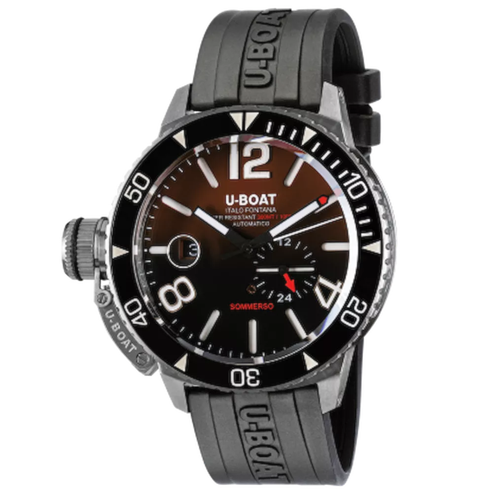 MOVIMENTO: meccanica svizzera a carica automatica Sellita SW 200 con modifiche tecniche su specifiche U-BOAT. Frequenza 28.800 alternanze/ora. Riserva di carica: 41 ore. 26 rubini. Rotore scheletrato.