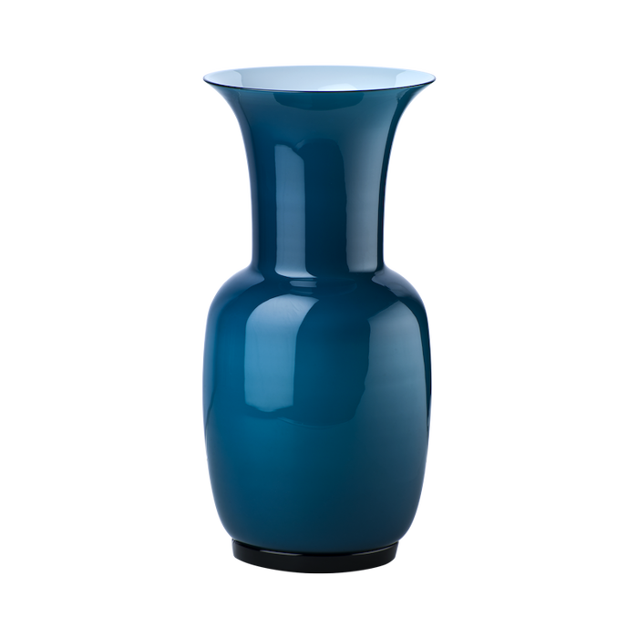 “Si presenta in colori raffinati, resi unici dall’antica e complessa lavorazione del vetro Lattimo, nata nel XV secolo per imitare la porcellana e ripresa dalle sperimentazioni della Fornace. Il vaso Opalino nasce nel 1932 dalla mente di Paolo Venini, aggraziato nei toni come nella forma.”