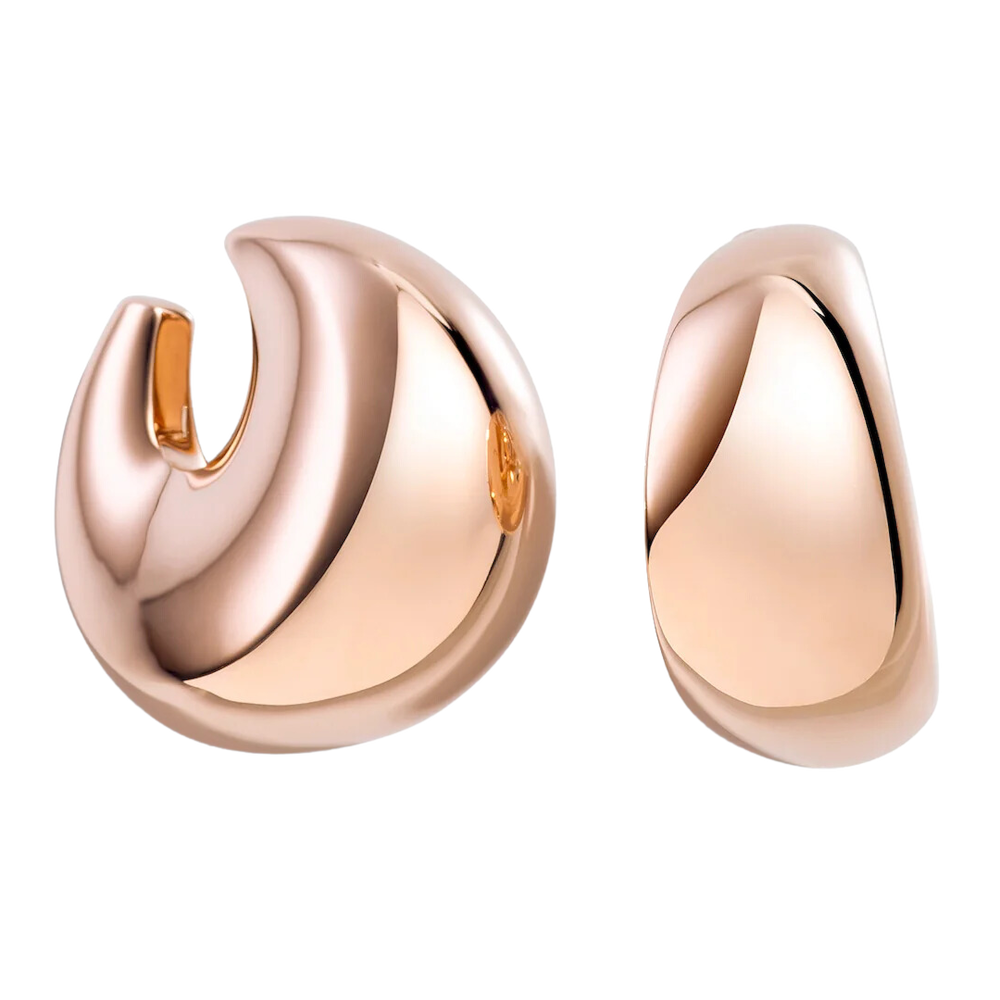 La superficie ampia e convessa, qui proposta nel classico oro rosa Vhernier, illumina il viso di un tenue bagliore.