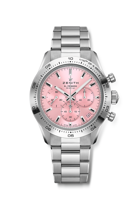 Il CHRONOMASTER Sport Pink presenta una cassa da 41 mm in acciaio con lunetta in acciaio lucido, abbinata a un quadrante rosa metallizzato e a un bracciale in acciaio. Animato dal calibro automatico ad alta frequenza El Primero 3600 dotato di funzione cronografo con precisione di lettura al 1/10 di secondo e riserva di carica di 60 ore. Edizione limitata di 500 esemplari, i cui ricavi saranno devoluti alla fondazione Susan G. Komen®.